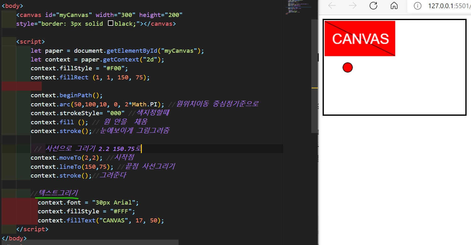 //캔버스의 드로잉 컨텍스트를 반환한다 contextType을 2d로해주었다