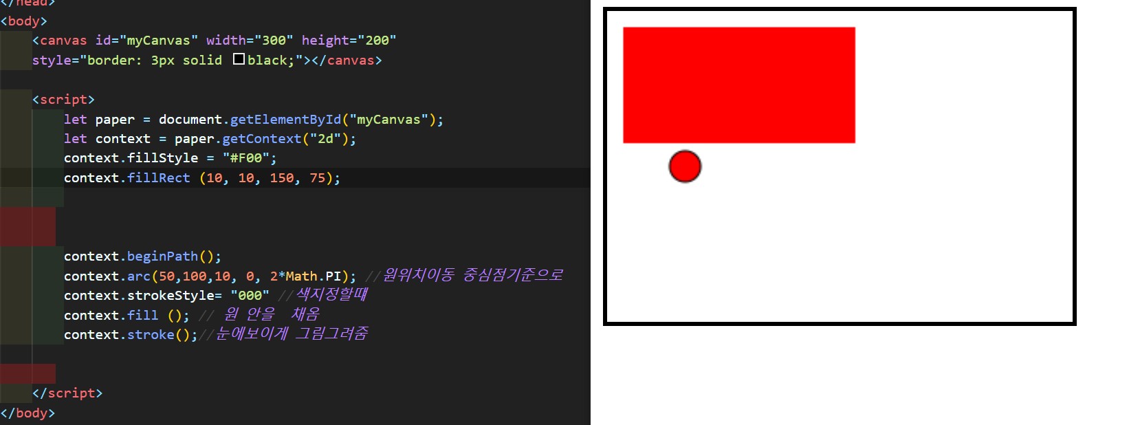 //canvas안에 빨간 사각형나오게하기